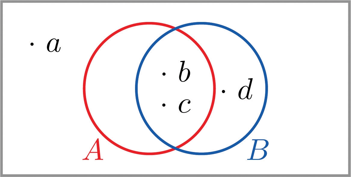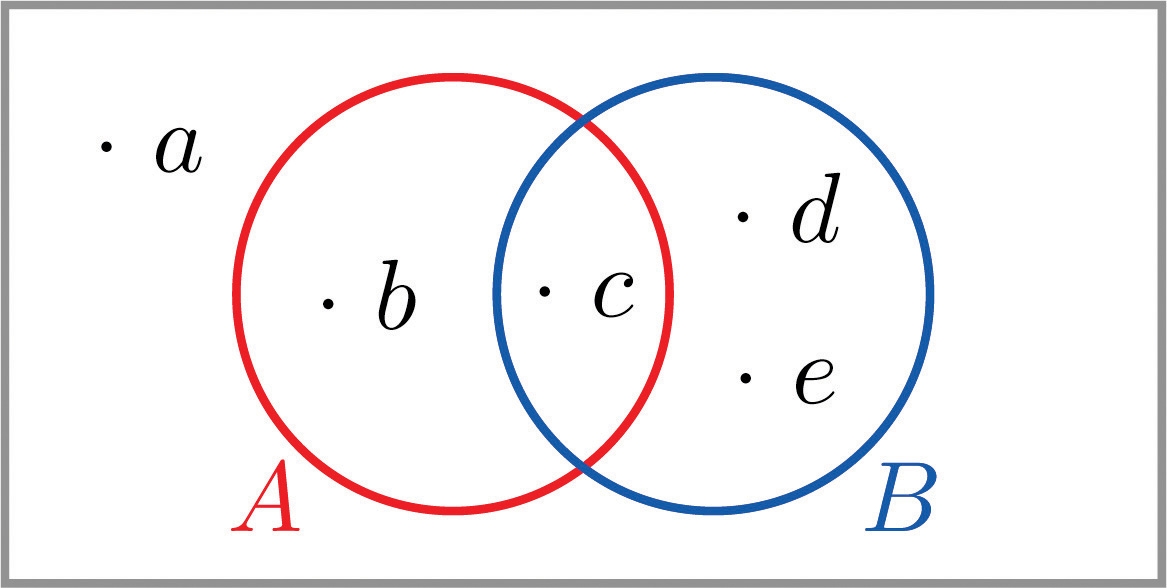 Ex 8. The Venn diagram provided shows a sample space and two events and . Suppose and . Confirm that the probabilities of the outcomes add up to 1, then compute the following probabilities.