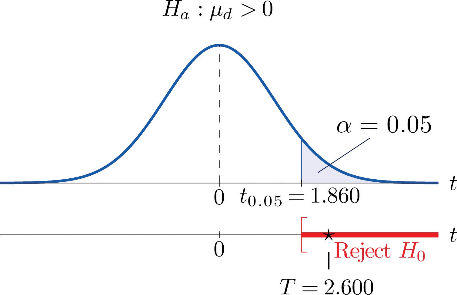 (If the differences had been computed in the opposite order then the alternative hypotheses would have been Ha:μd<0. )